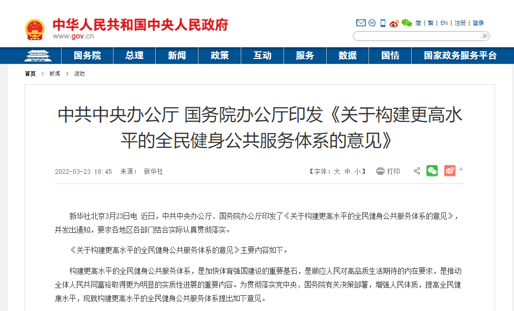 2024-03-19近日,中共中央办公厅、国务院办公厅印发了《关于构建更高水平的全民健身公共服务体系的意见》,并发出通知,要求各地区各部门结合实际认真贯彻落实。构建更高水平的全民健身公共服务体系,是加快体育强国建设的重要基石,是顺应人民对高品质生活期待的内在要求,是推动全体人民共同富裕取得更为明显的实质性进展的重要内容。